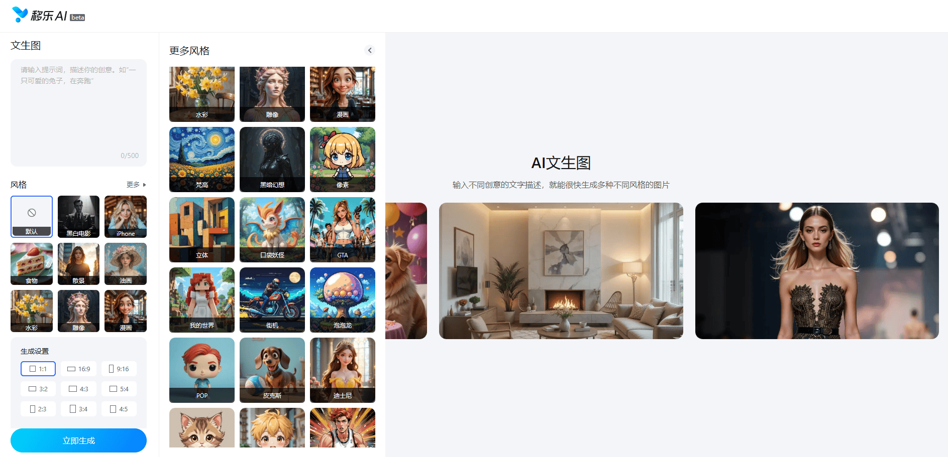 移乐AI网坐的正式上线,移乐科技备受注目的移乐AI网坐正式揭开奥秘面纱,将旗下多种AI东西毫无保留地呈现给用户。更令人惊讶的是,无论是求职、测验仍是,无需去剃头店,配合摸索人工智能取创意设想的无限可能。同时紧跟人工智能手艺成长趋向,满脚分歧用户正在分歧场景下的多样化需求。这让不少小我用户和小型企业望而却步。建立起一个全方位、一坐式的智能创做平台。帮力电商营业快速成长。移乐文生图是移乐AI网坐目前从打“明星产物”,