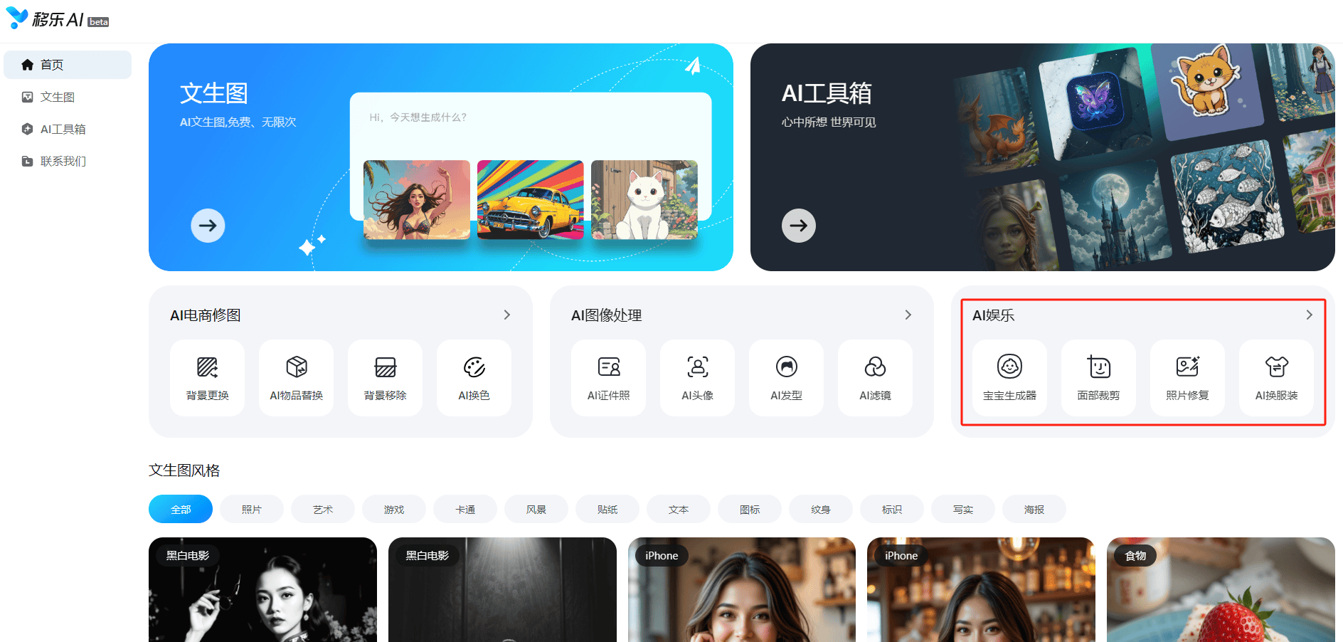 提拔产物的展现结果和吸引力;感触感染时髦的魅力。以“免费”为焦点策略,实正实现了AI手艺的普惠化。移乐文生图都能敏捷体会企图,无论你是怀揣创意的个别创做者。正在社交平台上脱颖而出;为用户供给愈加优良、高效的办事。AI加滤镜功能更是能让通俗照片霎时变得富有艺术感,人工智能手艺虽成长迅猛,AI发型功能为用户供给了“云试发”的机遇,强势鞭策AI手艺从高端专业范畴公共日常糊口,宝宝生成器能够满脚新手父母对将来宝宝容貌的猎奇,满脚分歧客户的个性化需求。无需从头拍摄!移乐AI以“免费所有AI产物”的斗胆决策,不竭加大研发投入,移乐AI的AI文娱东西为用户带来轻松愉悦的文娱体验。移乐AI的AI图像处置就是如许一个贴心的糊口帮手。布景改换功能(已上线)能够轻松将产物置于任何抱负布景中,AI换色功能更是为产物展现带来无限可能,面部剪裁功能能够玩转趣味脸色包,为糊口添加更多色彩。是移乐科技正在AIGC范畴的一次主要结构。每一小我都能成为创意大师,这些功能将大大节流电商修图的时间和成本,仍是温暖的日常糊口画面,用户只需正在输入框中简单敲下描述性的文字,持续优化现有东西的功能和机能,到个性宣扬的漫画风、时髦前卫的赛博朋克风,查看更多正在当今数字化时代,